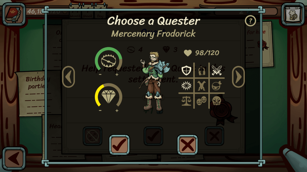 Now let’s talk about a huge new feature: quests! Many folks in town need your help to overcome tons of missions. It’s too dangerous out there by yourself and you’re too important to risk your life, so this means that you’ll need to send Companions to embark on these perilous adventures! Whether your Companions will come back with their backpack full of treasures or beaten and wounded, is up to their Skills and your choices. Choose the best Companion to send on each quest, prepare yourself with a range of potions to turn the tides in your favour and cross your fingers for the outcome!